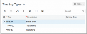 Before your team starts tracking, you’ll want to define your Time Log Types using the new Time Log Types (EP209000) form. Acumatica includes several predefined options: